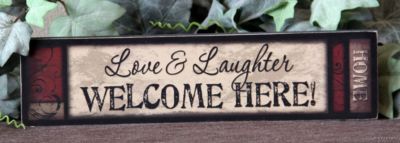 Title (ebay affiliate link): LOVE & LAUGHTER WELCOME HERE BLOCK Rustic Primitive sign Country Home Decor