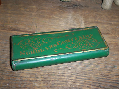 Title (ebay affiliate link): Antique Vintage Old Primitive Green Tin Child's Scholars Companion Pencil Box