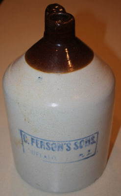 Antique Country Primitive Stoneware Whiskey Jug, Buffalo NY Advertising 1800s