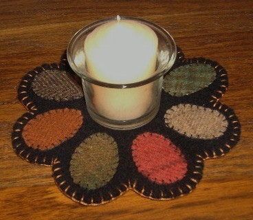 Title (ebay affiliate link): Primitive Wool Penny Rug~Easter Eggs~Votive Candle Mat~Doily~Homemade