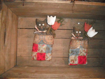 Title (ebay affiliate link): 2 PRIMITIVE CAT DOLLS FLO&JO OLDE QUILT DITTY BAG WELCOMING IN SPRING W/TULIPS