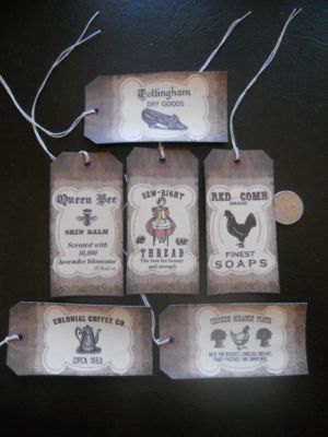 Title (ebay affiliate link): primitive country PRIMITIVE TAGS primitive MAKE-DO grungy PRIM ORNIES folk art