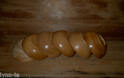 Title (ebay affiliate link): 6/Primitive Farmhouse Wooden/Wood Stacking Dough Bowls~Natural Patina~6"