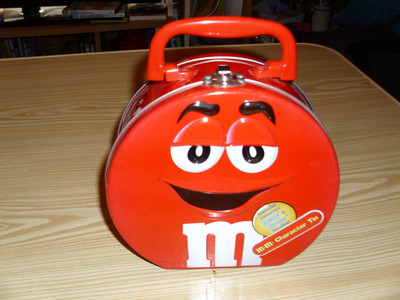 2001 M & M Character Tin - Purse / Small Lunch Box - Red