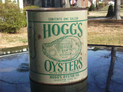 VINTAGE OYSTER CAN HOGG'S OYSTER CO GLOUCESTER POINT 1 GALLON WITH LID NICE
