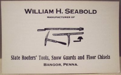 Advertising trade card.William H.Seabold,Slate Roofer's Tools, Etc.Bangor.Pa