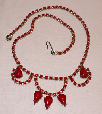 Title (ebay affiliate link): VINTAGE LIPSTICK RED MILKGLASS BEADS TEAR DROP RHINESTONE CHOKER BIB NECKLACE