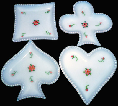 Vintage Opalescent Milk Glass 4pc. Bridge Set Pattern Trinket Dishes