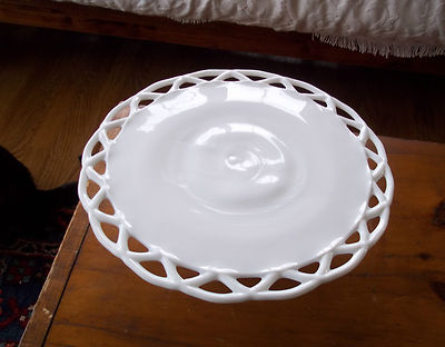 Title (ebay affiliate link): LE Smith 14" Open Lace Milk Glass Pedestal Cake Plate Stand