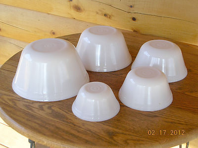 VINTAGE 5 PIECE FEDERAL MILK WHITE GLASS MIXING BOWL SET-GRADUATED SIZES-NESTING