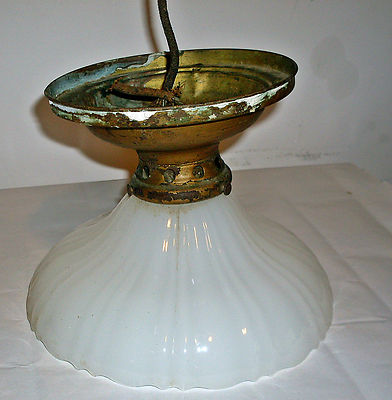 ANTIQUE VINTAGE ART DECO CEILING LIGHT WITH BRASS BASE AND A MILK GLASS SHADE