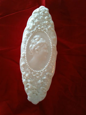 Fostoria Jenny Lind Milk Glass Cameo Box