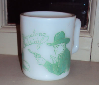 Title (ebay affiliate link): Vintage 50's Western Hopalong Cassidy Mug Cup Milk Glass 3" Tall