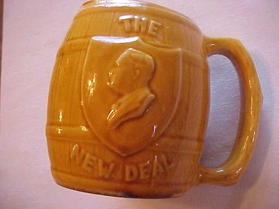 Title (ebay affiliate link): FDR NEW DEAL 1930s Mug Cup Roosevelt Image Pottery Yelloware NR