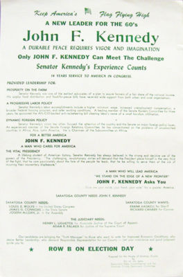 -Rare- 1960 -John F Kennedy- Saratoga Springs, NY Presidential Campaign Poster