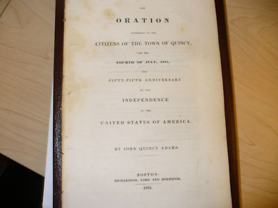 Title (ebay affiliate link): John Quincy Adams "Oration" to the Citizens of Quincy in 1831