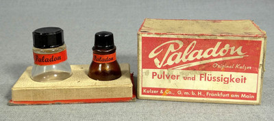Title (ebay affiliate link): ANTIQUE GERMAN DENTAL DENTIST KULZER PALADON DENTURE POWDER&LIQUID GLASS BOTTLES