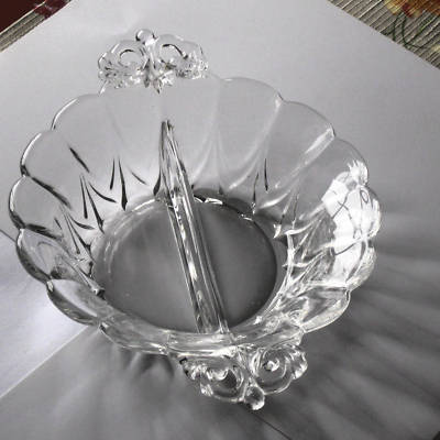 Title (ebay affiliate link): Elegant DEPRESSION Glass Divided NUT BOWL "JANICE"