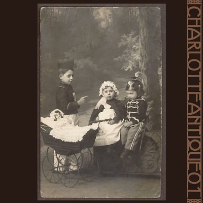 Title (ebay affiliate link): Children disguised with doll and pram 1914 antique photo