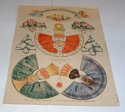 Vintage Sheet Uncut Christmas Figures ~ German ~ Weihnachts Bilderbogen ~ Kings