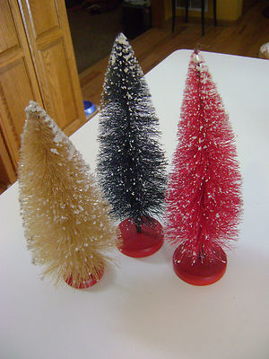 Title (ebay affiliate link): VINTAGE~THREE 9" ORIGINAL BOTTLE BRUSH TREES~FROSTED W/MICA~GOOD CONDITION