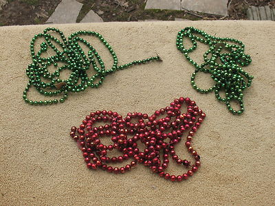 Vintage Christmas Mercury Glass Garland Lot--3 Strands--Red & Green--22 Feet--NR