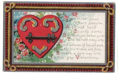 Heart w/ Dead Bolt~Poem~Valentine~Postcard 1907+