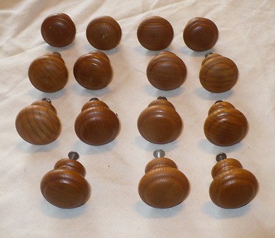 Title (ebay affiliate link): huge vintage oak drawer pull set 15 lot knob handle 1.5" wood kitchen cabinet