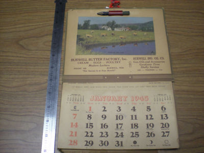 1945 BURWELL, NEBRAKSA BUTTER FACTORY CALENDAR
