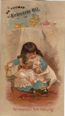 Title (ebay affiliate link): Girl & Puppy Eclectric Oil Quack Medicine Rock City Falls NY Trade Card c1880