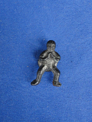 Vintage Metal Cracker Jack Gumball Toy Prize, Button Stud, Baseball Catcher