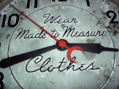 Title (ebay affiliate link): ANTIQUE "ART DECO" 'WEAR MADE TO MEASURE CLOTHES' WALL CLOCK CRYSTAL MFG 18" D