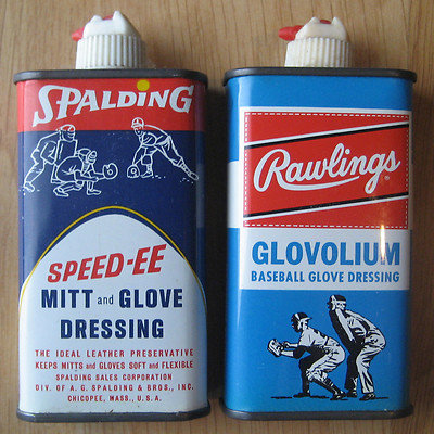 Title (ebay affiliate link): Vintage Rawlings Glovolium & Spalding Baseball Glove Dressing Tin Oil Cans