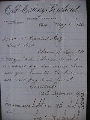 Title (ebay affiliate link): OLD COLONY RAILROAD BOSTON 1881NOTE SIGNED BY S. C. PUTNAM FREIGHT AGENT