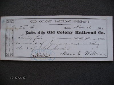 OLD COLONY RAILROAD BOSTON 1881 RECEIPT