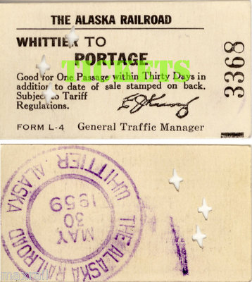Title (ebay affiliate link): Alaska RR one way Form L-4 Whittier AK to Portage AK May 30, 1959