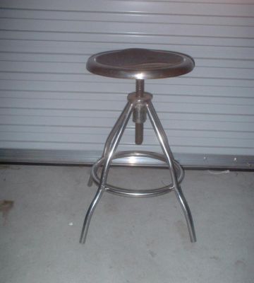 Title (ebay affiliate link): INDUSTRIAL/ MACHINE AGE ADJUSTABLE STEEL MEDICAL STOOL~ STAINLESS / CHROME?