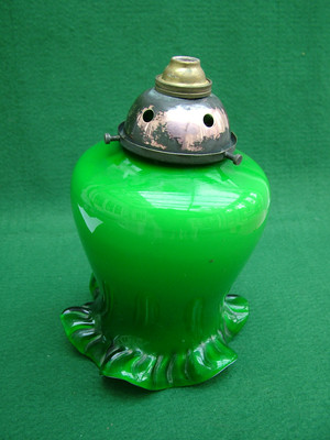 Title (ebay affiliate link): ANTIQUE GREEN & WHITE crinkle GLASS LIGHT SHADE with BRASS FITTING & BULB HOLDER