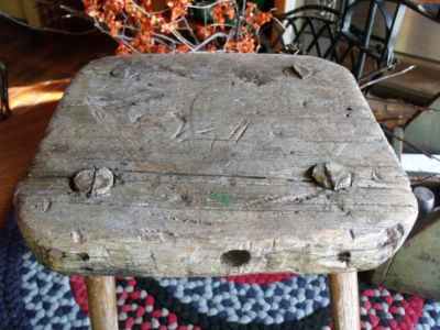 Title (ebay affiliate link): Rustic Primitive Antique Hand Made Wood Milking Stool Original Shabby Paint