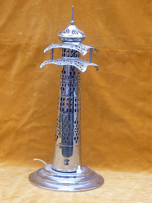 Title (ebay affiliate link): LARGE AMERICAN PIERCED METALWORK CHROME ART DECO PAGODA TABLE LAMP
