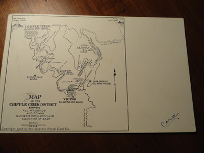 Title (ebay affiliate link): 1906 Cripple Creek, Colorado Mining town and Mining District Map postcard views