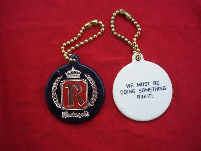 vintage advertising RHEINGOLD BEER keychains "We must be doing something right"