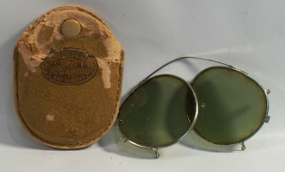 Title (ebay affiliate link): PAIR VNTG FOLDING 1940's CLIP ON POLAROID AMERICAN DAY SUNGLASSES + GLASSES CASE