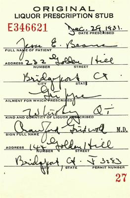 Title (ebay affiliate link): Old Doctor's Prohibition WHISKEY Flu Medicine PRESCRIPTION Stub Bridgeport CT