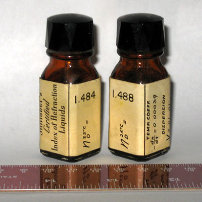 Title (ebay affiliate link): 2 Vintage Bottles Shillaber's Certified Refractive Index Liquids: 1.484 & 1.488
