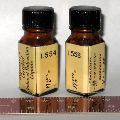 Title (ebay affiliate link): 2 Vintage Bottles Shillaber's Certified Refractive Index Liquids: 1.554 & 1.558