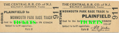 Title (ebay affiliate link): CNJ Plainfield to Monmouth Park Race Track round trip unissued printed in 1947