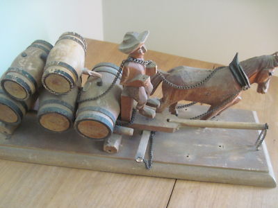 Title (ebay affiliate link): Vintage Western Wooden Cowboy Horse & Cart w/ Barrels