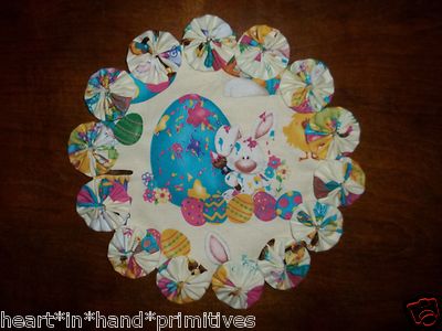 Primitive Spring Easter Egg Bunny Yo Yo Candle Mat Penny Rug Doily Table Mat