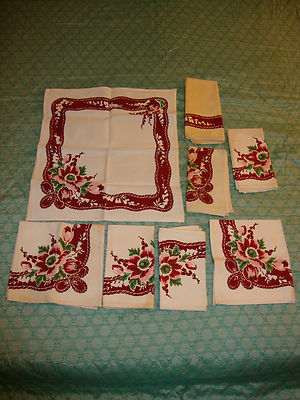 Title (ebay affiliate link): 8 Vintage Tulips & Bows *Sailcloth Napkins *PINK MAROON GREEN